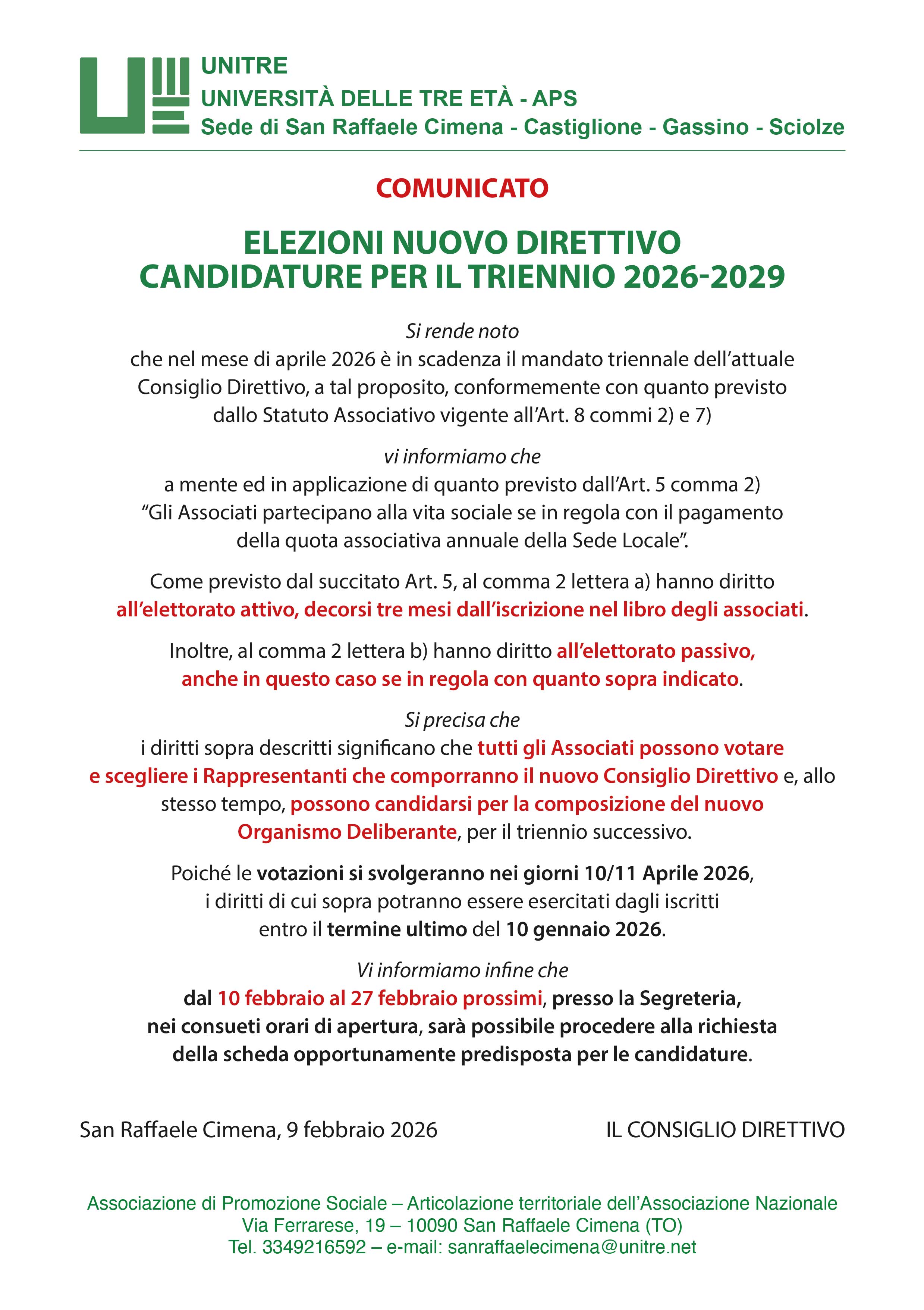Una informazione importante è quella che ricorda il prossimo rinnovo del Consiglio Direttivo.