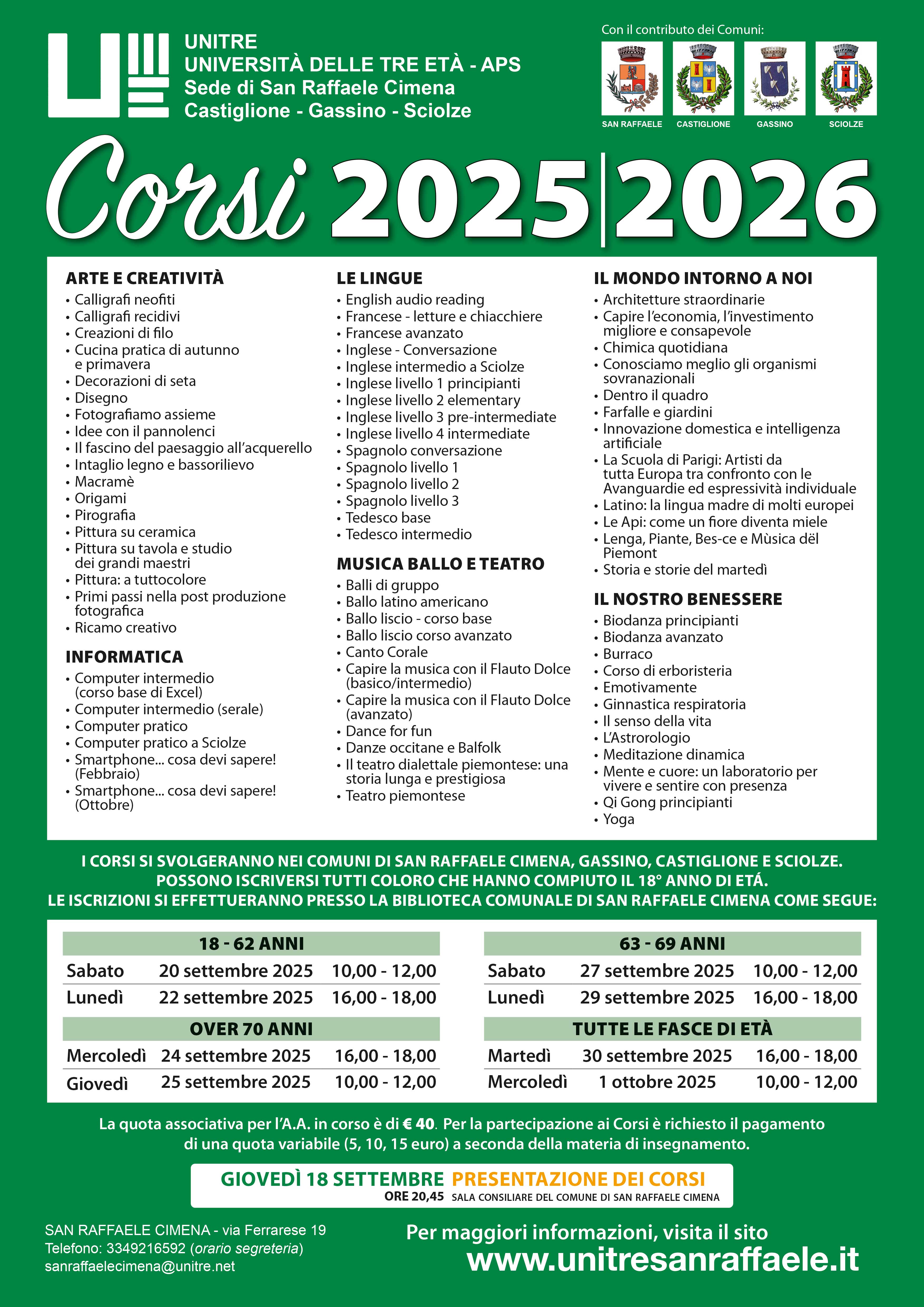 Per facilitare la consultazione, all'elenco dei Corsi, diviso per categorie di attività, presente sul sito sotto la voce "I Corsi", aggiungiamo, in anteprima, il .pdf scaricabile del Libretto, nella forma tradizionale, cioè...