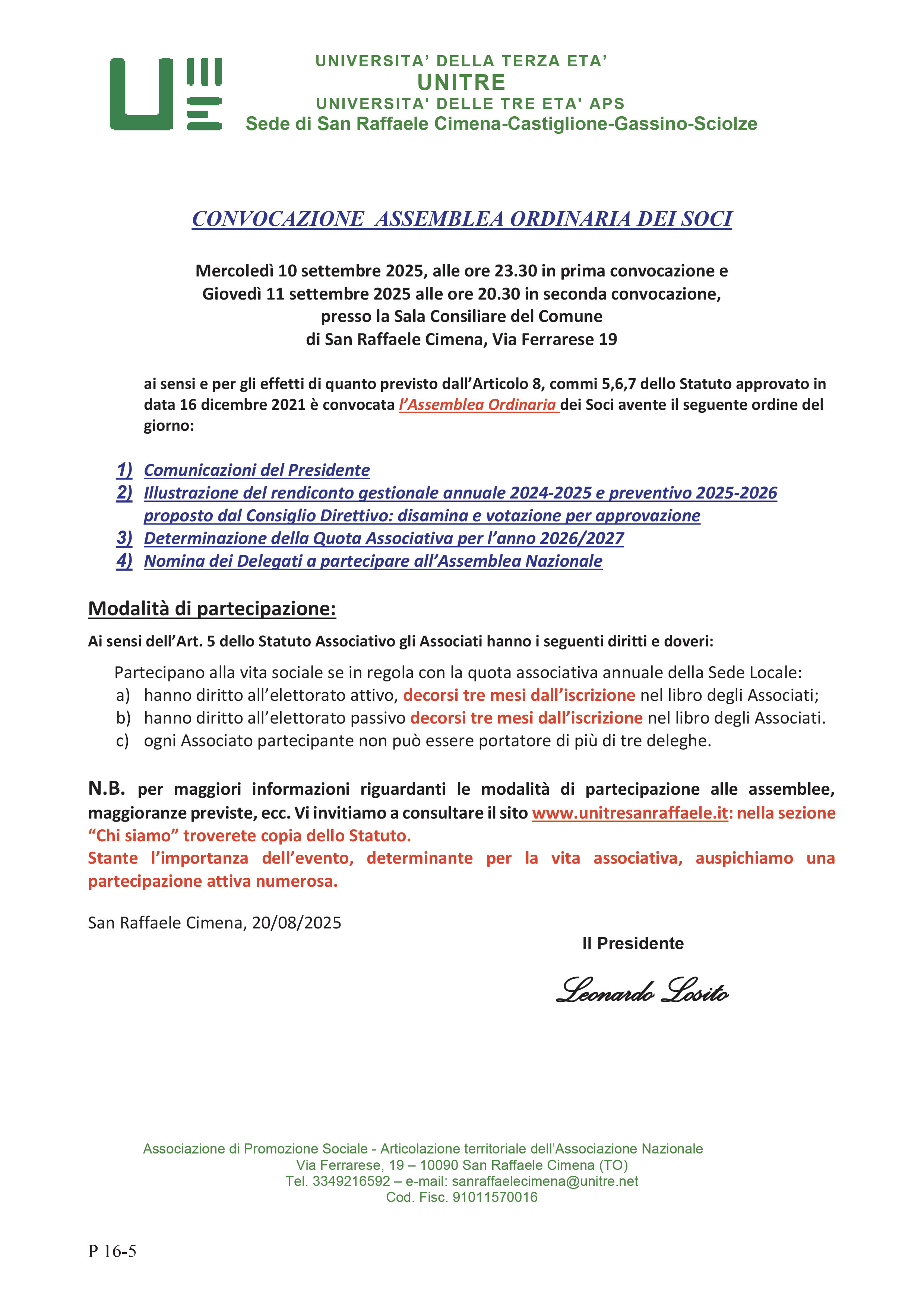 5 x 1000 ALLA NOSTRA UNITRE - CODICE FISCALE 91011570016