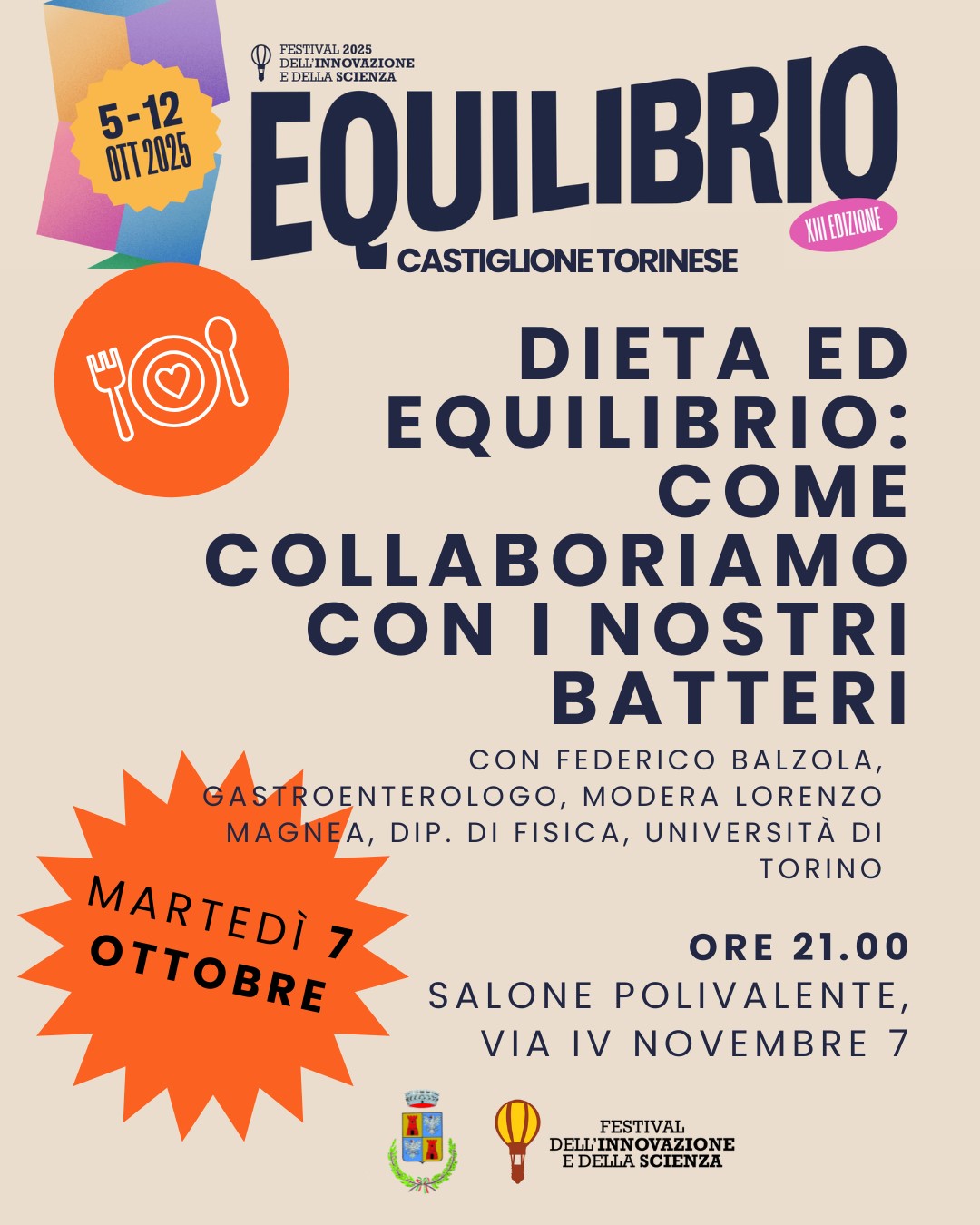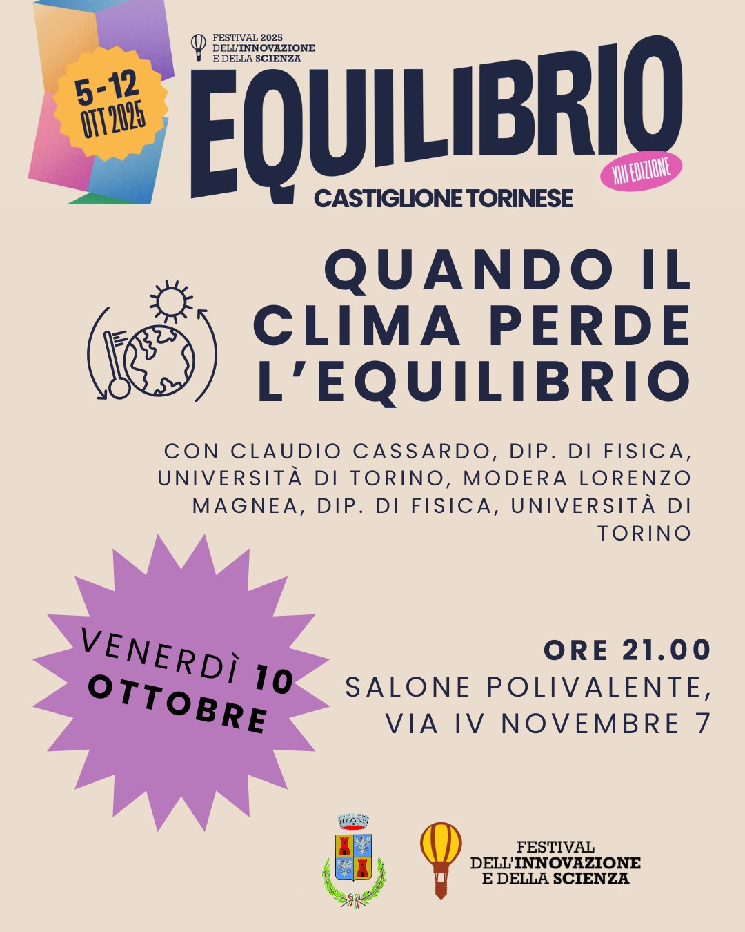 Nell'ambito del Festival dell'innovazione e della scienza 2025, arrivato alla 13° edizione, che si tiene dal 5 al 12 ottobre, intitolato " EQUILIBRIO", il Comune di Castiglione ospiterà 2 eventi. Il primo parla della nost...