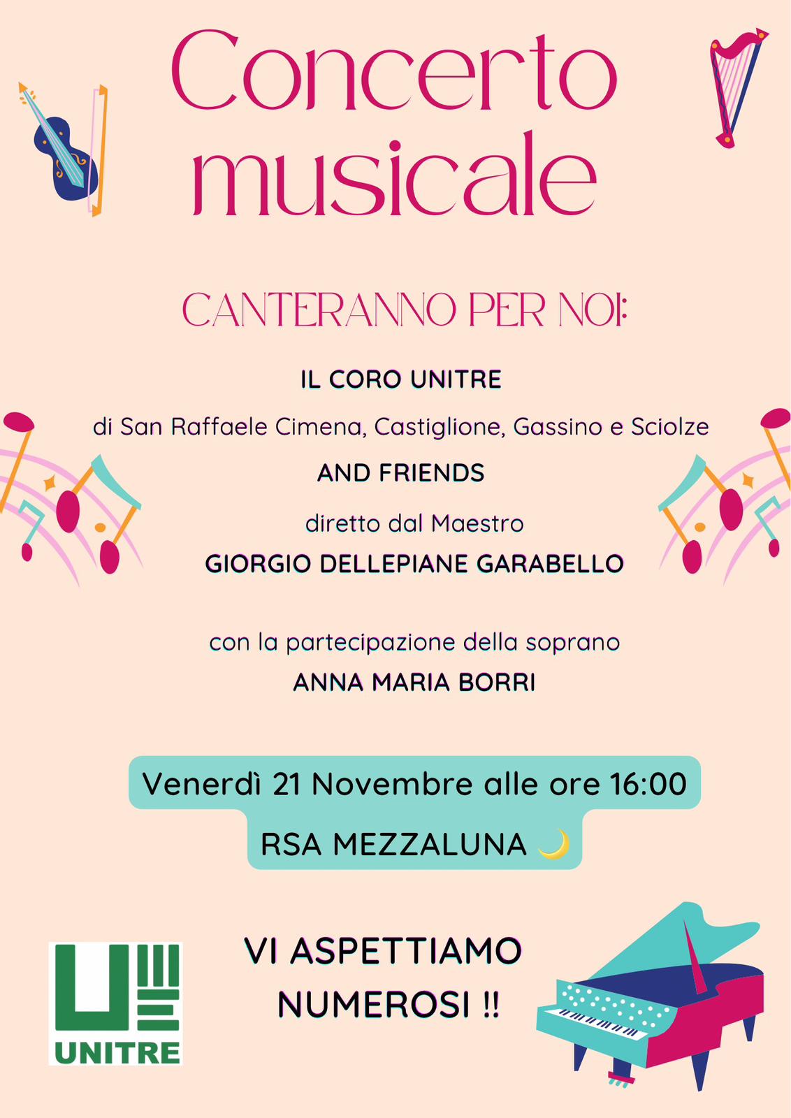 Concerto del Coro della nostra Unitre, con la speranza di offrire un momento di serenità in un periodo di grandi tensioni e difficoltà.